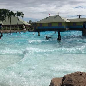 2018/12/28に行きました。他のコメントほど混雑はなし。そこまで広くなく(実面積ドーム1個分位)1日で十分回れます。各アトラクション毎でやっている時間が決まっているので、開園時間にいないと全部は出来ないかも。天気がたまにシトシト降る感じだったので、日焼けもなく、暑くもなく、寒くもなく楽しめました。ボディーボード講習(現地で追加すると$10)+BBQ付き(格段に食べれるものが出ます)で申し込みましたが、それでも金額がディズニー並みは割高ですね。