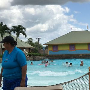 The pool has a wave pool, a shallow play pool for toddlers, and about five different slides. You can also use boogie boards. My kids seemed to really enjoy the wave pool and the slides.