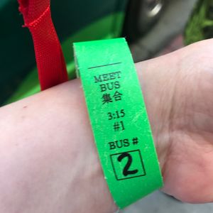 名前を確認してもらい、帰りのバスナンバーと時間が印刷された紙を手首に巻いてくれました。このガイドの方は、英語しか出来ないようで、着いたら日本語のガイドさんから説明がありますよというようなことを教えてくれました。ピックアップ時間が9時35分 バス出発が9時43分でした。現地までは、渋滞に巻き込まれることもなく、スムーズに10時25分くらいに到着しました。
