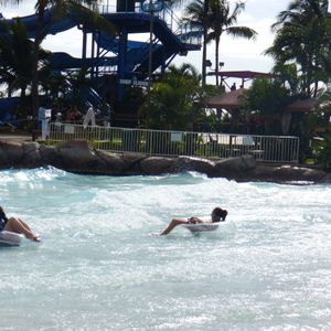 ホノルルの雰囲気とは違って、ここはほんとにハワイ??って最初は思いましたが、日本人は周りにはほとんどおらず地元のハワイアンたちに紛れて大はしゃぎしました!あっという間の4時間、ランチ以外は休憩を取らず夢中で遊びました!日本にはないたくさんのスライダーがあって全部挑戦しました!中でもレイジングリバーが最高に楽しかった!4~6人乗りのため、2人で遊びに行った私たちはいつも相乗り。メンバーの体重の合計によってスライダーの勢いが変わるため何回乗っても違う乗り物に乗ってるみたいで超、超、チョ~楽しかった!!最後は皆でハイタッチ!皆ココロは一つ!4回も乗りました☆日本人も少ないので地元のハワイアンや外国の方と同じ乗り物で大はしゃぎできたのでそういう交流もとっても楽しかったです!