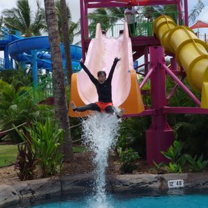 My wife and me were at Wet’n’Wind in April 2015. It was an amazing day for us and we will do it again on our next trip to Hawaii! There are green, yellow and red attractions so that everyone can find some good option. We enjoyed the half-pipe (the world’s widest one!). Food is very nice and not expensive at all. Moreover, Wet’n’Wild is not too crowded. We spent not more than 7-8 minutes in the lines and easily found free chaise-longues. In addition, my wife enjoyed swimming in the pool with artificial waves! In the afternoon we found a waterfall where you can swim and take beautiful pictures. The water park has a huge zone for children with a plenty of entertainments for them. We definitely recommend Wet’nWind for your vacation, especially for families with small children. So much fun! And do not forget using sunscreen because the sun is very strong at the water park.