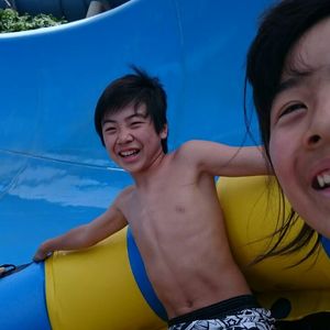 ひとつのボードに子供と一緒に乗ることもOKで、うまく波に乗れたときは気分爽快!子供も怖がることなく何度も楽しんでました。もうすこし大きくなったらスライダーにも挑戦させてみたいです。