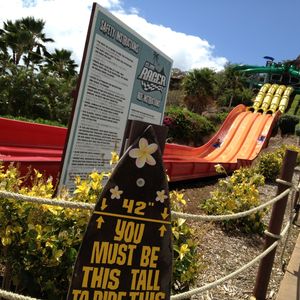 I went to Wet 'n' Wild Hawaii for the water slides. There were more foreign families than Japanese visitors in the park. Sandals are allowed in the park! However, you have to take them off before going down the water slides, so going barefoot is probably the best option (^^) Everyone was barefoot.
