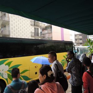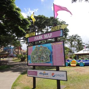 "We participated as a family of four at Wet 'n' Wild Hawaii to enjoy the thrilling water slides! Unfortunately, it was raining in the Waikiki area on the day of our visit, which dampened our spirits a bit, but we headed to the Hyatt Regency Hotel for our 8:25 meeting time. The tour bus departed for Wet 'n' Wild Hawaii about 30 minutes late. During the ride, they played a DVD explaining the park, and the bus driver provided a detailed explanation in English while we traveled on the H1 HI WAY. After about a 30-minute drive, we arrived at Wet 'n' Wild Hawaii, where the weather was clear, making us all excited despite the rain in Waikiki. We had the benefit of entering the park an hour early, so we were able to enter before the general admission guests. We quickly rented a locker to lighten our load and had a blast. Before we knew it, it was lunchtime. Since it was a weekday, purchasing lunch went smoothly. The last time we visited was on a Sunday, and there was a long line for lunch then. Unfortunately, many attractions were closed in the afternoon, but we still had a great time until our return meeting time of 3:15 PM. On the way back, we checked the bus number written on our strap and boarded, arriving in Waikiki around 4:15 PM.