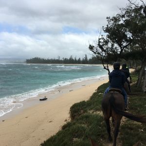 家族で乗馬体験しました。レンタカーで、ポロクラブへ行き、ツアーに参加しました。ノースショアが本当に素晴らしい場所で、心地よい風の中、海岸沿いを馬で歩けて最高に素晴らしい体験ができました。息子も娘婿も初めての乗馬でしたが、賢い馬で、何の問題もなく楽しめました。途中写真を取ったり、息子はゴープロを腕につけて馬の操作には問題ない状態でビデオを撮ったり、途中記念撮影して下さったり、英語ですが、いろいろ説明してもらいハワイに来た最高の思い出になりました。