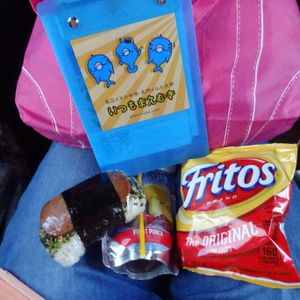 It's difficult to enjoy a beach while carrying your belongings, but we were able to store our things in a locker and borrow mats, snorkeling gear, fins, and an underwater bag to ride our bikes to the beach, which allowed us to have a great time! The rental fees for these items were included if you signed up for the kayak tour. We had lunch at a pizza place, where we got a large pizza cut into quarters along with drinks.