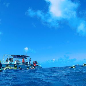 The Japanese guide was adorable, and the local crew members were all very friendly, making it a really fun tour! At first, we didn't encounter any dolphins and only saw whales, but in the end, we came across a pod of dolphins and were able to swim with them! I definitely want to participate again next time.