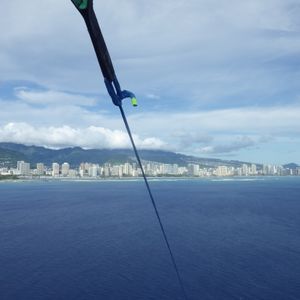 係りの人がとてもフレンドリーでした!150メートルを希望しました。乗る前は怖かったですが、空を飛ぶとゆったりとした時間が流れてとても気持ちが良かったです。他の人が飛んでいて船に乗っている間は、船のスピード感を楽しめ、船と空で二度楽しめました(^O^)!とてもおすすめです!ハワイに来た実感がとてもわく、ハワイならではの体験になったと思います(^O^)
