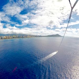 150メートルのプランに参加しました。とにかく高かったですが怖さはなかったです。ただ、揺らされた時は少し怖かったですが、、、(笑)晴れていたので、景色はとても綺麗でした。ダイヤモンドヘッドやワイキキビーチ沿いを一望できます。上空は意外と寒かったので、水着の上にラッシュガードやTシャツ(濡れてもいいやつ)を着ることをオススメします。船で移動しますが、結構上下左右に揺れるので苦手な方は酔い止め必須だと思います。