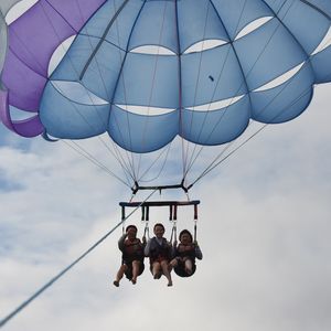 When I experienced parasailing in Hawaii a long time ago, it was a two-person setup with one in front and one in back, but it seems that side-by-side is the trend now.
