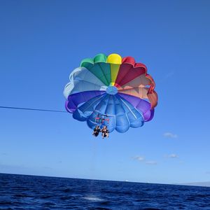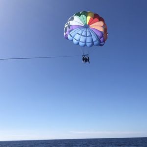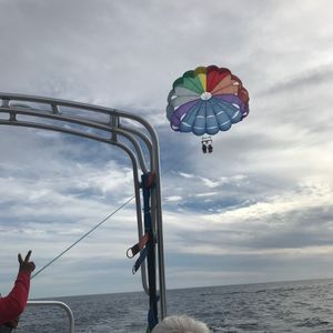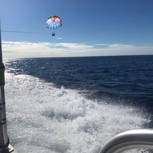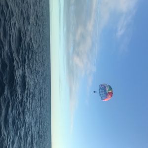 娘の念願のパラセイリング 体験しました。天気にも恵まれ とても気持ちよかったです。娘が小さいということもあり タンデム(娘が前で自分が後ろ)でのパラセイルでした。船でポイントまで行くので 船が弱い方は薬飲んだほうが良いです。スタッフの方も楽しくて親子とも大はしゃぎでした。とてもお奨めのアクティビティです。写真もとってもらえます。有料です。
