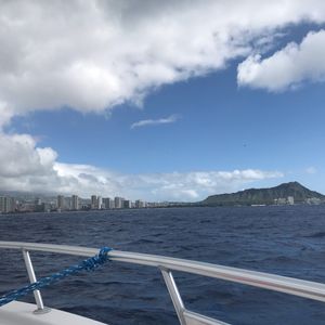 I participated in the 150-meter plan. It was quite expensive, but I didn't feel scared at all. However, it was a bit frightening when we were swaying... (laughs) Since it was sunny, the view was very beautiful. You can see Diamond Head and Waikiki Beach all at once. It was surprisingly cold up there, so I recommend wearing a rash guard or a T-shirt (something that can get wet) over your swimsuit. We moved by boat, and it swayed quite a bit, so if you're prone to motion sickness, I think taking anti-nausea medication is a must.