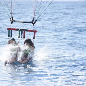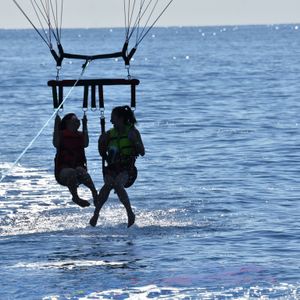 For parasailing, we flew in pairs. As others had shared, there was no floating sensation while flying, but it felt wonderful to look around at the sea and the cityscape. If I get the chance, I would like to try a higher flight next time. You can request to have photos taken before you fly. After landing, you can purchase a group of photos (1 SD card) for $30 (an additional $5 fee for card payments). When I got home and looked at the photos, there were about 90 pictures, all beautiful, so I definitely recommend buying them!