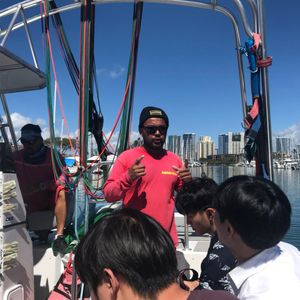The pickup bus was late, which made me a bit anxious, but the staff were very friendly and it turned out to be a fun time! While waiting to board the boat, they entertained us by letting us feed the fish! Parasailing was absolutely amazing! It was such a luxurious experience to look out over Waikiki from the sky in the morning! During the parasailing, the ascent was slow and there were no sudden jolts, so I felt stable and was able to fully enjoy the scenery without any fear!