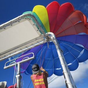 家族三人(皆大人)で参加しました。二人でしか乗れないと思っていましたが、三人で一緒に乗れました。高さは120メートルで申し込みましたが、高さの恐怖など全くなくとても気持ちよく優雅な時間でした。寝不足気味で船酔いを少し心配していましたが、スタッフの方々もとても楽しく酔うような暇さえありませんでした(笑)。今回のハワイで一番楽しいアクティビティでした❗。