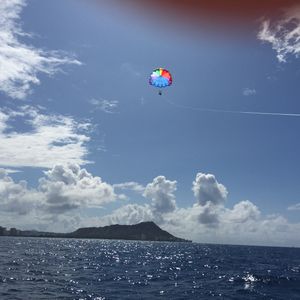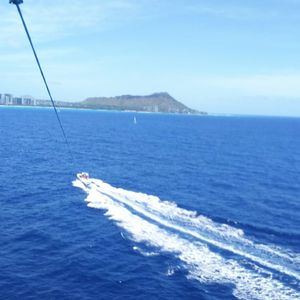 乗り物には強い方でしたが船で待機している時間に船酔いをしてしまいました。酔い止めは必要だと思います。以前バリで体験した時より高度が高くワイキキビーチを一望でき綺麗でした╰(*´︶`*)╯♡