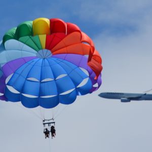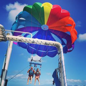 ジェットコースター大好きの夫のためにこのツアーを申し込みました。私は高所恐怖症なので本当に嫌でビビっていましたが、意外と大丈夫でした。ゆっくり高く上がるパラセイリングは、高所恐怖症の人にも勧められそうです。どうせやるなら、一番高いフィートに挑戦することをおススメします。