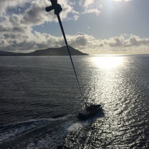 This was such an amazing experience...would totally recommend it to anyone that is going to Oahu in Hawaii....we went in a pair which made it more fun. Would definitely do it again. We were the first ones to go and as the parachute pulled us up in the air the view was already amazing. As we were all up in the air we could see the tiny boat below us. We got the chance to see dolphins that were coming in and out of the water. We were up in the air for a good 8 mins, and as we started to come back down to the boat we got dipped into the cold ocean salty water. This really is worth while and i would definitely consider doing it again when i visit hawaii again.