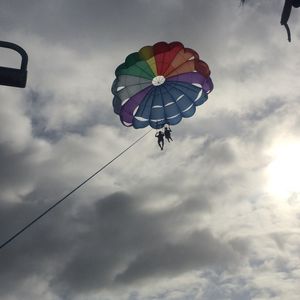 高さ90mのパラセーリングを体験しました!この日風がとても強く、落ちるんじゃないかと思ったくらいスリルがありましたがとても楽しかったです!ただ相方は高所恐怖症のため、もうビビりまくり!普段それほどでもない私でも90mの高さにはさすがにビビりました!スタッフの方も英語オンリーだと思っていたのですが、ちょいちょい日本語を話してくれるので、(日本のギャグも。笑)とてもフレンドリーな方達でとても満足しました!チップと写真の販売なんかもしていたので、ある程度、