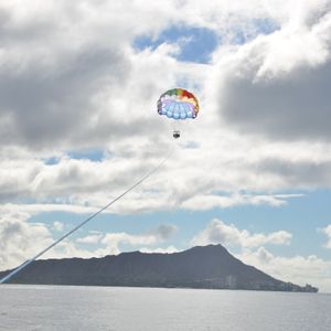 初めてのパラセイリングだったので、やるまではちょっと怖いのかなと思っていました。でも、やってみたら絶景に感動で、怖いとは一切感じませんでした。海から(空から)ワイキキの街やダイヤモンドヘッドはなかなか見れないのでお勧めです。