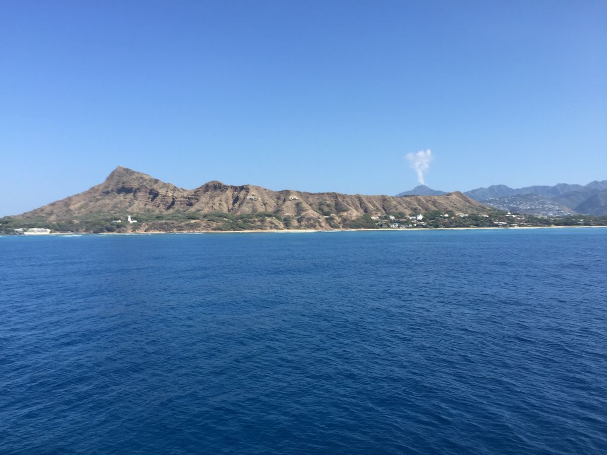 私たちが乗船した際は、ダイヤモンドヘッドの奥の火山?から煙がもくもく出ており、
