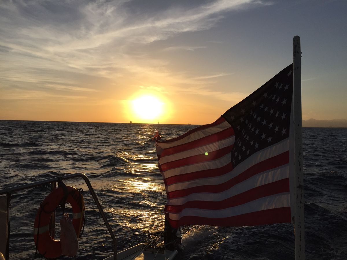船からの景色は最高です。水平線に夕日がきれいで、太陽が沈むところまでみれました。