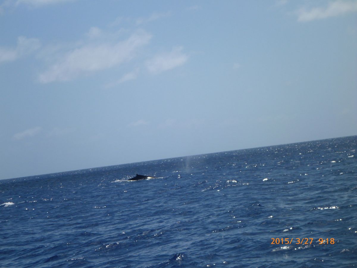 ポイントで停泊し、しばらくするとクジラは見れましたが、波間からほんの少し潮吹きや背中や尾ビレが見えるくらいでした。