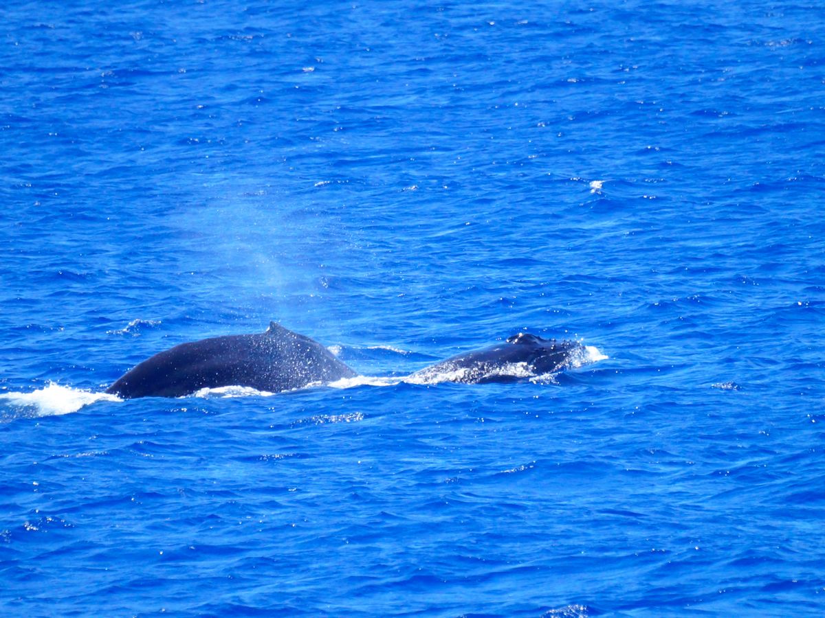 ツアーの商品紹介の写真のようなダイナミックなジャンプを見ることはかないませんでしたが、潮を吹くところも見れましたし、親子でしょうか立て続けに息継ぎをする様を何度も楽しむことができました。