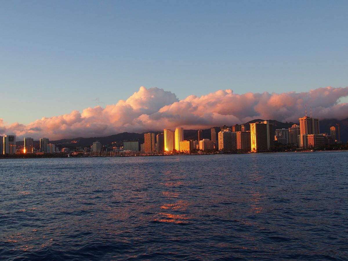 夕陽はとてもきれいですし、360°青い海と言う光景や、海側から見たワイキキのホテルなど、美しい眺めが楽しめます。