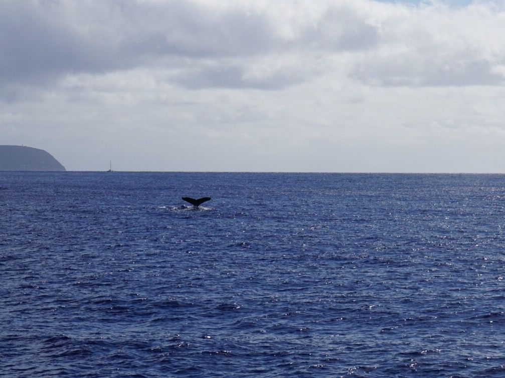 当日は波が高く、クジラが少なかったようです。なかなか見つからず、ダメかなと思っていたところ、やっと何回か見れました。波が高かったせいか、船酔い気味になりました。乗り物酔いに弱い人は酔い止めの薬は飲んだほうがいいかもしれません。当初の予定では、クジラを写真におさめようと思っていたのですが、ピントを合わせる前にもぐってしまうので、諦めて、肉眼で楽しみました。双眼鏡もいいのですが、たくさんクジラがいるときはよくても、数回しか見れないときには双眼鏡はかえって見つけにくくなることがわかりました。