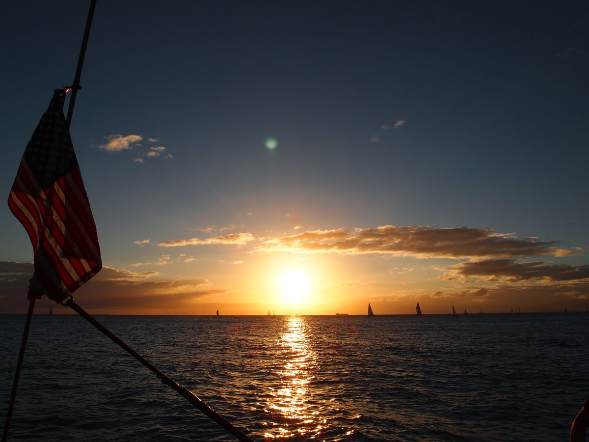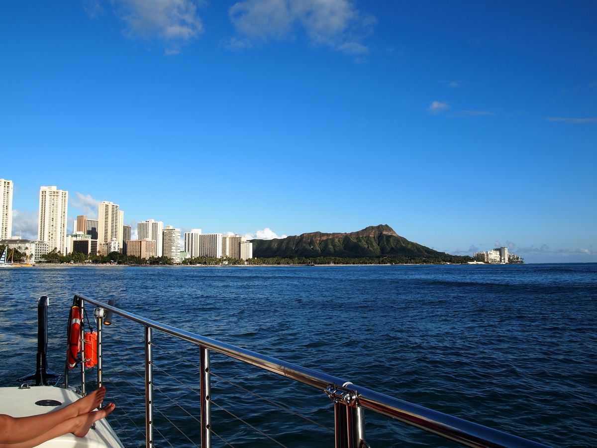 友人夫婦と一緒に初体験船は小さいがとても楽しかったです。船は少し揺れカクテルを少し頂いたら元気になれ甲板に出ると突然鯨が~背中を何度も出し潮吹きを目のあたりし驚き幸せのひと時でしたダイヤモンドヘッドが良く見られ日が落ちるサンセットはムード最高でした。そろそろ帰るのかな~と思っていると又クジラが尾びれを何度も見せていただき又ハワイの海に来て~