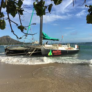 The last time I went to Hawaii, I enjoyed a dinner cruise where I could relax and savor my meal while cruising, but this sailing experience made me feel even closer to the ocean. It was truly wonderful to be splashed by the waves and to connect with nature! I could feel the ocean's blue up close, the wind on my skin, and the pleasant buzz from the Mai Tai and beer added to the sense of freedom. The sailing staff were very friendly and even danced with us, which made it so much fun! I definitely want to do this again when I go back to Hawaii!