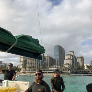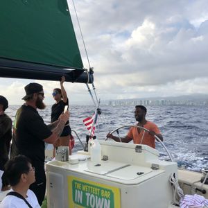 fun time, great crew, good drinks & music!! if you get sea sick be sure to pack medicine because there are some rough waves. there’s opportunity for animal spotting & i got some great videos of surfers. also safe to bring towel and/or wear swim suit because we also got wet. the breeze was perfect, great views of diamond head and waikiki beach.