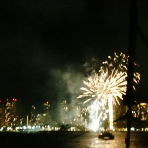 陸上からは1回。昨年はデイナークルーズで食べるのに忙しくて花火の歓声が上がった時には、既にとき遅し残念な結果となりました。今回は以前サンセットで乗船したこのツアーにしました。船長やクルーの変更はあったけど、フレンドリーな雰囲気はそのままでドリンク飲み放題も効して気持ちよく花火鑑賞ができました。船長が日本語で「SAKE NOMIHOUDAI」と叫んだときは数人の日本人が拍手しました。