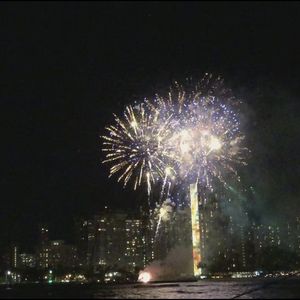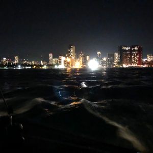 The fireworks lasted about 10 to 15 minutes! After that, we cruised the night sea. The neon lights of Waikiki were really beautiful!