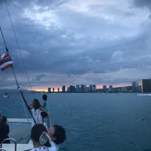 Although the sunset sailing was delayed a bit due to some circumstances (high tide?), we ended up watching from the beach, which was disappointing. However, since it was a Friday sailing, the fireworks off the Hilton matched perfectly with the night view and were absolutely amazing! Also, the captain's entertaining performance while we enjoyed our drinks was great!