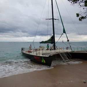 違うカタマランの集合場所に並んでしまい、乗船ギリギリに「バウチャーが違う!私達が乗るのは違う場所だ!」と言われビックリしました。砂浜を裸足でダッシュして何とかセーフ(笑)夕日が素晴らしく、船内も日本人は少く、子供も居ず、大人の世界で楽しめました。
