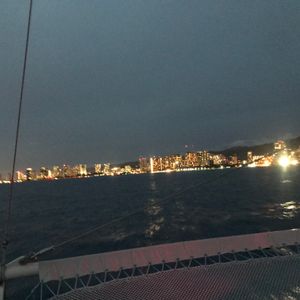 Although the weather was unfortunately cloudy, I was able to catch a glimpse of the sunset for a moment, and the night view of Waikiki was also visible. With music, drinks, and a pleasant sway, it was comfortable. There were a moderate number of Japanese people, and we were able to communicate while taking photos together. I definitely recommend this tour.