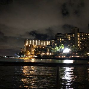 The sunset was also beautiful as the clouds lit up, and when the sun went down, the night view of the Waikiki hotels was stunning, so I recommend it for those who are not averse to being on a boat.
