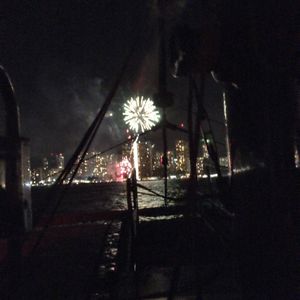 集合時間は19時。迷ってしまい10分ほど遅れたので焦りました。が、実際のところチェックインは19時20分くらいからスタート。問題なく参加できました。ヒルトンの花火は出航後すぐに始まって、すぐに終わってしまうので、その後はひたすら遠くの夜景とお酒を楽しむ感じ。飲み物の種類は豊富だったので、どなたでも楽しめると思います。トイレもあるので安心です。私が参加した時は日本人があともうひと組いたかな。お子さん連れの方もいました。説明等、全て英語のみでしたが大丈夫だと思います。