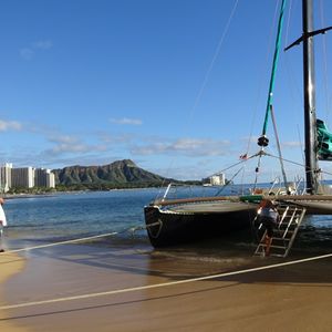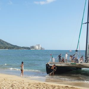 遊覧船でもなく、ヨットでもないカタマラン号は、直接海風を感じながら、マイタイやシャンパンを飲んでしゃべって、踊って?皆で楽しく過ごせる、最高のツアーでした。コメントにリピするとあったのですが、私もリコメンドします。夕陽も、ワイキキの夜景、ダイアモンドヘッドも海から望め、景色も最高でした。クルーの方もノリが良く、楽しませてくれました。