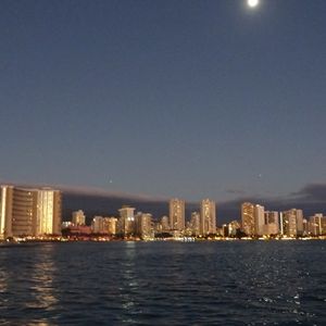 I participated in early December. Unfortunately, it was cloudy, so we couldn't enjoy the sunset sailing, but the night view of Honolulu from the sea was beautiful, and both the crew and passengers were cheerful, making for a fun time.