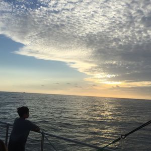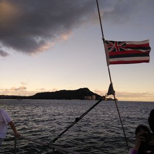 We were blessed with great weather and were able to see a truly beautiful sunset. Surrounded by a fun captain and mostly non-Japanese guests, I had a wonderful time even though I don't understand much English. The boat didn't sway as much as I expected, and no one got wet at all. We stepped into the sea a few steps to board the boat, and then we were barefoot inside the boat the whole time. You can see a different view of Diamond Head too! I definitely want to join again if I have the chance!
