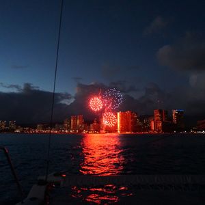 花火はやはり日本が1番ですが、船に揺られワイキキの夜景を眺めながらのマイタイは最高です★オアフはどこに行ってもどのツアーに参加しても日本人だらけでしたが、わたしが参加したときは女の子4人組と年配のご夫婦2組だけでした!それでもBARに行くより安心で安全だと感じました!外国気分を味わいたい方、初海外の方にもおすすめです♪