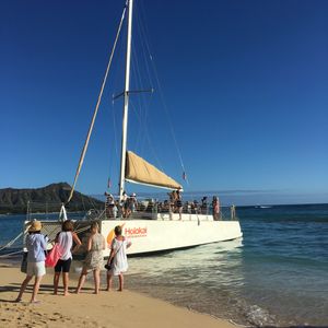 まず、集合場所がわかりづらく(同じような船がけっこうある)ワイキキビーチをかなり歩きました。乗船する際に海に入ります。かかとのないサンダルは流される危険ありです(子供のサンダルが流されました。)