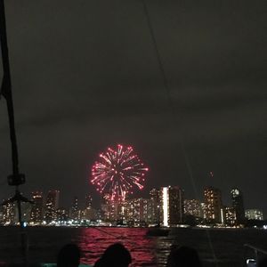 The fireworks viewed from the sea were exceptional. The night view was also very beautiful, but the ocean was pitch dark.