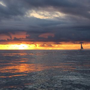 夕日に向かって走るカタマラン号は揺れも余り無く、