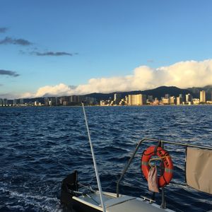 I searched for a short cruise without meals and participated. The weather was nice that day, so it wasn't too cold in the evening, and the scenery was amazing! I could see Diamond Head, Waikiki Beach from the sea, and even a whale spouting in the distance! It was the perfect cruise that I could join between daytime activities and dinner time, yet it felt relaxed and enjoyable! This time, it was just the two of us, but next time I want to encourage our kids to join as well!