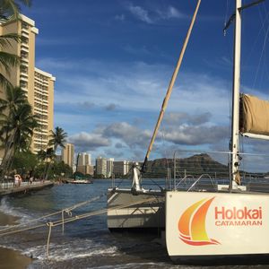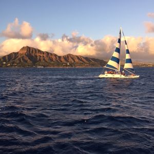 The view of Diamond Head and Waikiki Beach from the ocean side was amazing! The Mai Tai was delicious too! We were blessed with great weather, and the sunset was very beautiful. I participated with eight colleagues from work, and everyone was satisfied. I would love to join again when I go to Hawaii.