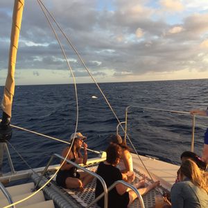 ヨットということで揺れが心配でしたがこの日はとても穏やかで一緒に行った妊婦も無事乗船できました。スタッフのかたも優しく写真をとってくださったり、ほかのお客さんと交流したり楽しいじかんでした。また夕日もきれいにみれましたし、ダイヤモンドヘッドも間近でみることができ、大変満足しました!